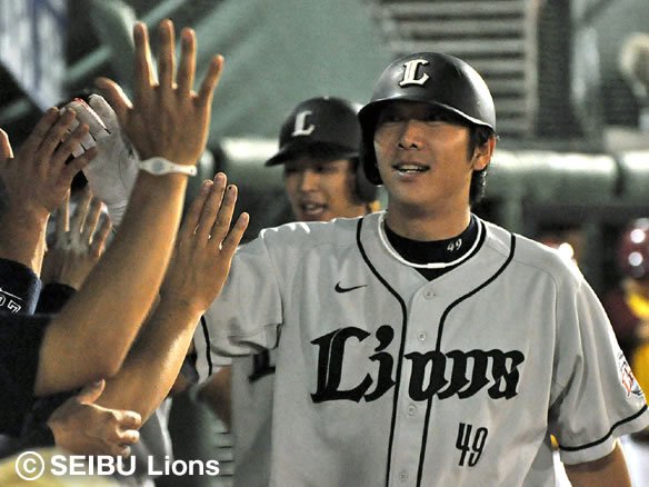 投手 永井 1番 片岡 中飛 2-2から2球ファールで粘り、7球目のアウトコース低めのフォークをうまく拾い上げるも、センター・聖澤が左中間に寄ってランニングキャッチ。 |