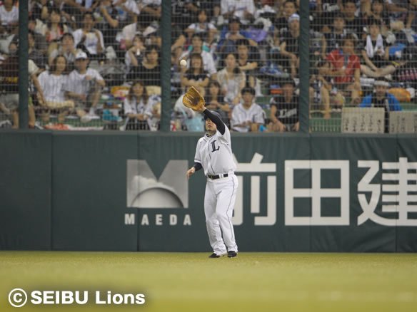 投手 西口 9番 金子 中飛 フルカウントからインコースの変化球を打ち上げさせ、フラフラと上がった打球はセンター・栗山が落ち着いてキャッチ。 |
