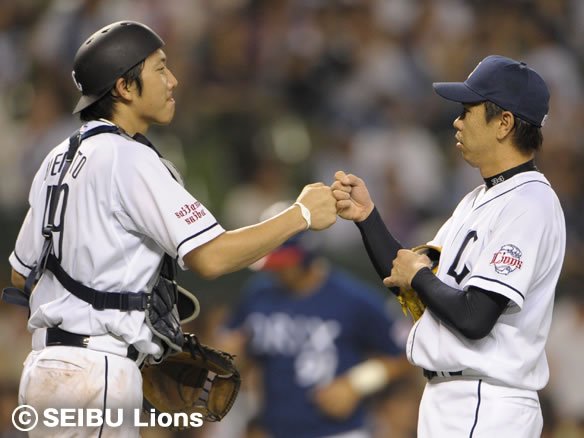1死から2ベースヒットを許した西口でしたが、丁寧に投げて後続を抑えました。4番・フェルナンデスからの攻撃で、さらにリードを広げていきましょう! |