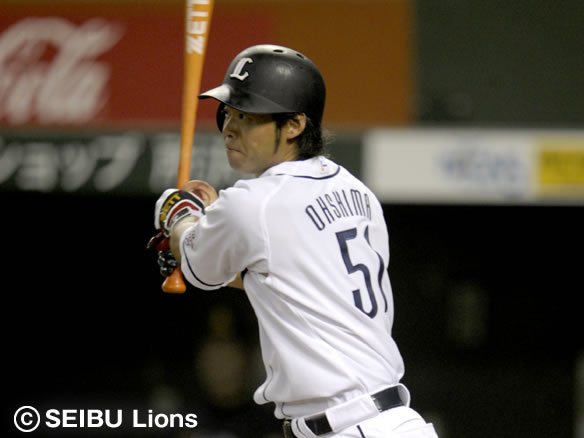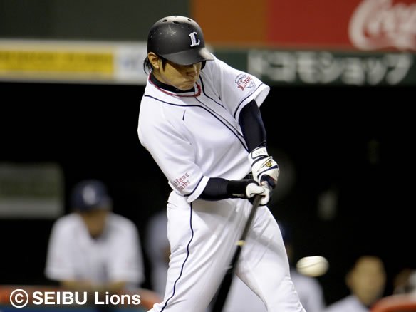 先頭・フェルナンデスのフォアボールとブラウンのヒットなどで1死2,3塁のチャンスを作ると、平尾の2点タイムリーで逆転に成功! さらに2死満塁から栗山の2点タイムリーも飛び出し、この回一挙4点を奪って試合をひっくり返しました! |