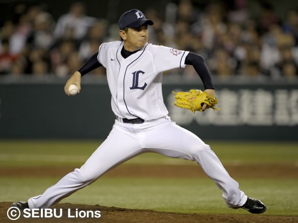 投手 岡本篤 【埼玉西武選手交代】 ピッチャー・石井一→岡本篤 |