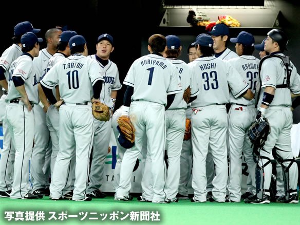 帆足は先頭の糸井に2ベースヒットを打たれ、ピンチを迎えたところでリリーフ陣に後を託すと、原と浅村の好プレーでこのピンチをしのぎました! 良い守備から流れを確実に呼び込み、得点につなげたい! |