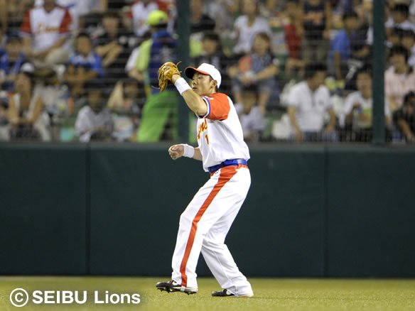 1番 聖澤 中飛 フルカウントからアウトコースのストレートをとらえられるも、必死に下がったセンター・栗山が最後はジャンピングキャッチ!! ファインプレー!! |