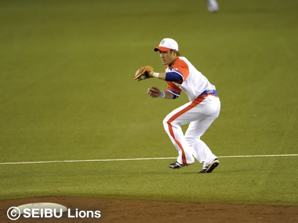 8番 細川 三ゴ 1-1からアウトコースの変化球を引っ掛け、サード・中村紀に正面で捕球された。2塁ランナー・高山は2塁に帰塁。 |