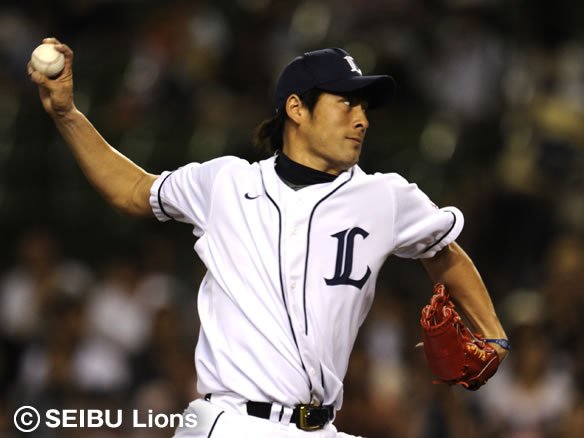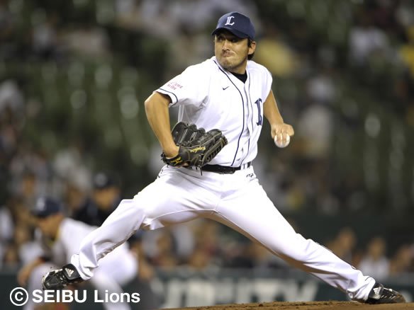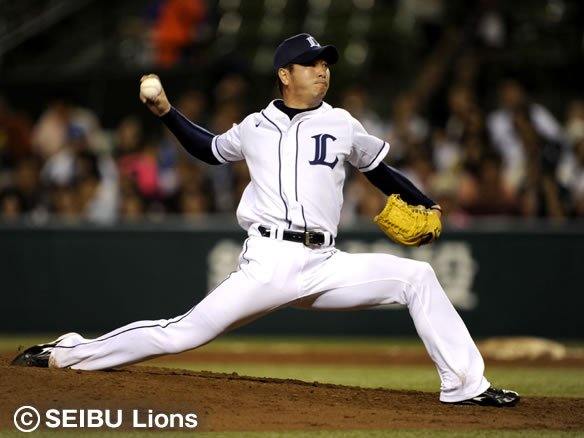 投手 岡本篤 【埼玉西武選手交代】 ピッチャー・星野→岡本篤 |