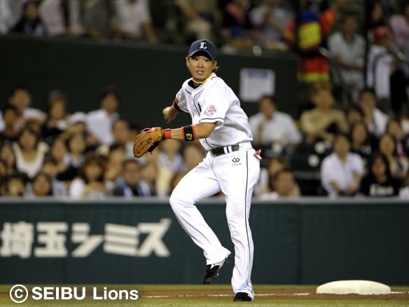 3番 中島 中安 2-1から4球目のインコース低めのスライダーを素直にピッチャー方向に打ち返すと、広く空いた二遊間を鋭い打球が抜けていった! 2塁ランナー・栗山が一気に3塁を駆け抜け、ホームに還ってきて8対2! ![]() 8