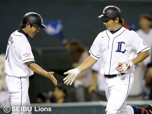 先頭・フェルナンデスの7号ソロで勝ち越しに成功すると、坂田の激走で流れがさらにライオンズに傾き、打者一巡の攻撃で5得点! 試合の主導権を奪取しました! |