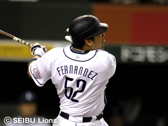 4番 フェルナンデス 右飛 初球、アウトコース高めのスライダーを打ち上げてしまい、ライト・森本が前進してキャッチ。 |