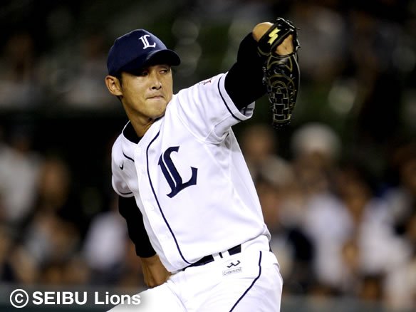 投手 岡本篤 【埼玉西武選手交代】 ピッチャー・西口→岡本篤 |