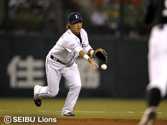 2番 栗山 投バゴ 1-1からインコース高めのボールをバントするも、ピッチャー・薮田が正面で捕球し、3塁に送球。2塁ランナー・細川がフォースアウト。送りバント失敗。 |