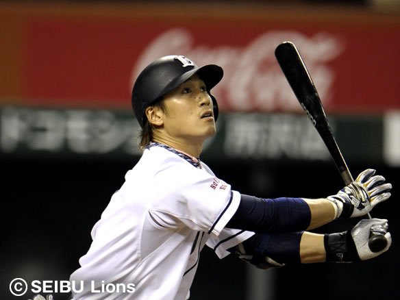 5番 中村 左中本 フルカウントからアウトコースの変化球を完璧にとらえ、打球はライオンズファンが陣取る左中間スタンドに飛び込んだ! 中村の2打席連発となる逆転19号3ランホームランで9対7!! ![]() 9