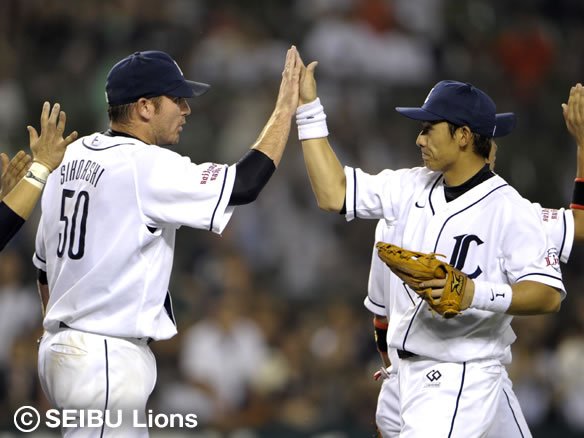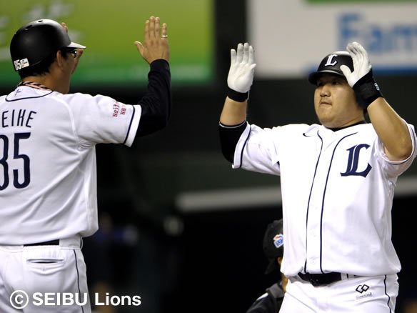 5回から11得点を積み重ね、最後は守護神・シコースキーが上がり相手の反撃を許さず! 7本のホームランが飛び出す空中戦を制し、大逆転勝利を収めました! 明日の先発マウンドには西武ドームで8勝を挙げているエース・涌井が上がります。明日も必勝を期し、リーグ制覇へ向かっていきましょう!! |