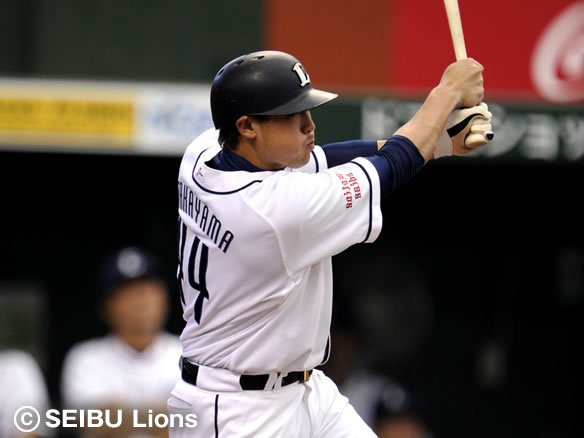 投手 吉見 3番 中島 左安 フルカウントからファールで粘った後の10球目、腕を折りたたみながらインコースへ甘く入ってきたチェンジアップをコンパクトに打ち返すと、打球はレフト・大松の前で弾んだ! |