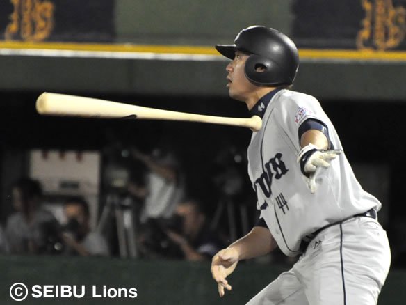 4番 カブレラ 左安 初球のアウトコースのスライダーを引っ張られ、強烈な打球をレフト・佐藤の前に運ばれてしまった。 |