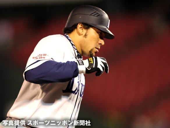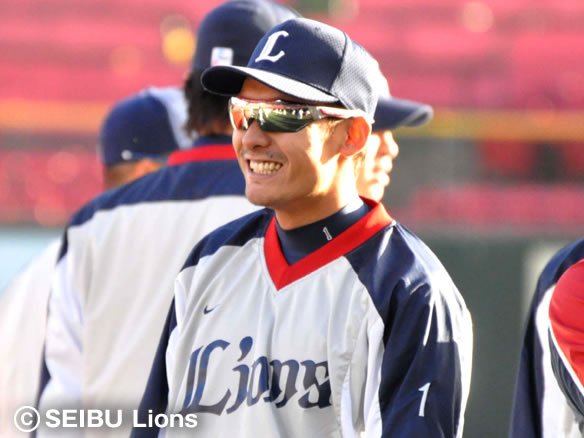 8番 中川 中飛 初球、アウトコース低めのカーブを弾き返され、打球は鋭いライナーとなって飛んでいったがバックするセンター・栗山が背走しながらグラブを差し出してキャッチ! ナイスプレー! |
