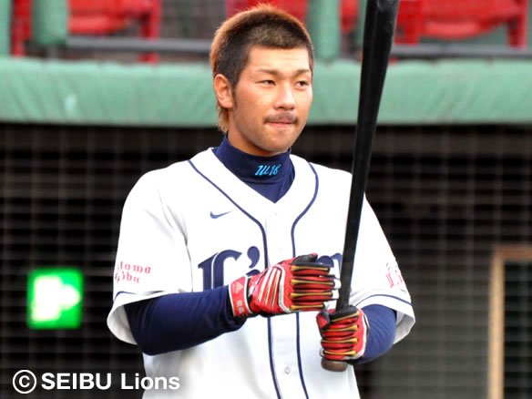 投手 菊池保 1番 栗山 左安 1-0から高めのスライダーを弾き返し、打球は痛烈なライナーとなってショート・渡辺直の頭上を越えてレフト前へ! 栗山はこれで13試合連続ヒット! |