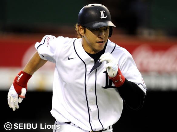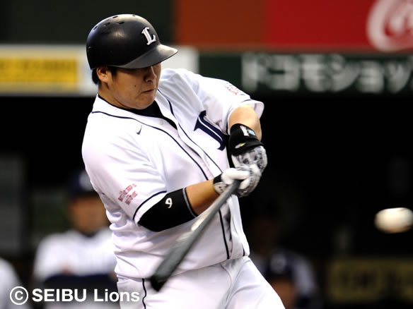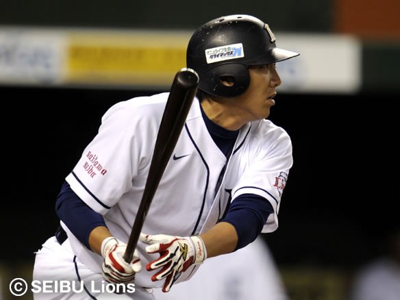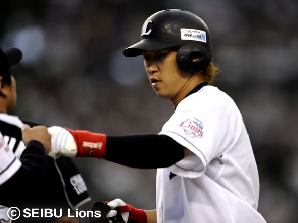 1番 栗山 左安 0-1からアウトコース真ん中のストレートを弾き返し、打球は三遊間を破りレフト前へ。2塁ランナー・佐藤は3塁を蹴って本塁を狙い、レフト・大松のバックホームと競争となって本塁上でクロスプレー。キャッチャー・里崎のブロックに阻まれ、惜しくもアウトとなってしまった。 |