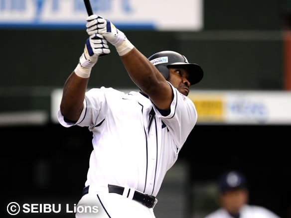 4番 サブロー 左翼二 2-1からファールで粘られた後の5球目、アウトコース低めのカーブをバットの先で引っ張られ、打球は横っ跳びしたサード・中村の横を破りレフト線を抜けていった。2塁ランナー・清田が還り4対2。1塁ランナー・井口は3塁へ、打ったサブローは2塁にそれぞれ進んだ。 ![]() 4