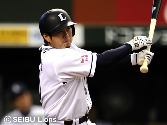 3番 中島 左安 0-2からアウトコース低めのシンカーをきれいに振り抜いた打球は、糸を引くような当たりとなって三遊間を破りレフト前へ! 中島はこれでこの試合猛打賞! |
