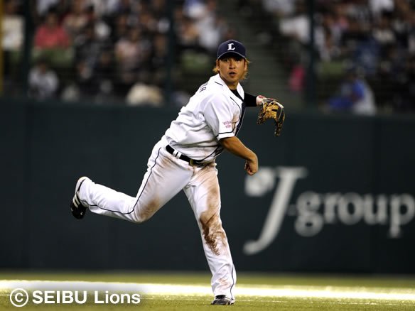 5番 福浦 投ゴ 2-1からアウトコース低めのカーブでタイミングを外し、ピッチャー・岸が正面に転がった打球をしっかりと捕球し1塁へ送球した。 |