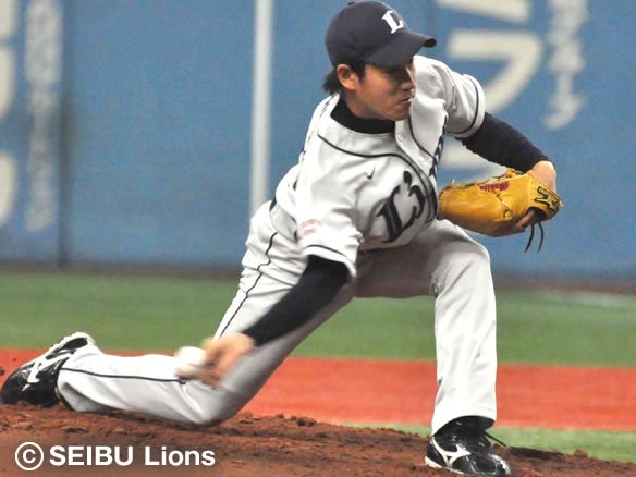 投手 牧田 5番 北川 死球 初球、内角に投じたシンカーが左ひじに当たってしまった。 |