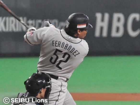 5番 フェルナンデス 左飛 1-2からの内角の変化球を打ち上げると、前進してきたレフトにゆっくりと落下点に入られた。 |