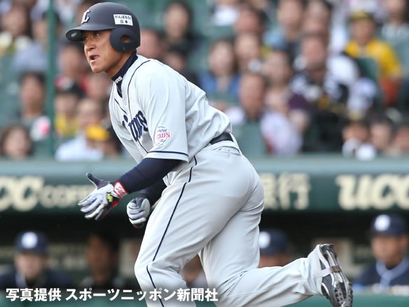 投手 メッセンジャー 7番 秋山 右二 1-2からの外角低めへのスライダーをうまく拾うと、打球はセカンドの頭上を越えた! ライトが回り込んで処理する間に、打った秋山が俊足を飛ばし2塁を陥れた!! |