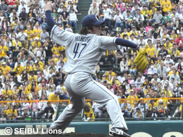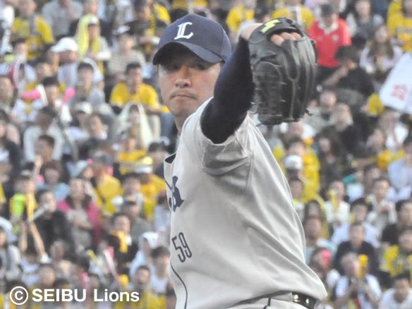 投手 帆足 1番 俊介 空三振 1-2からの外角低めに落ちるパームで空振りを奪った! |