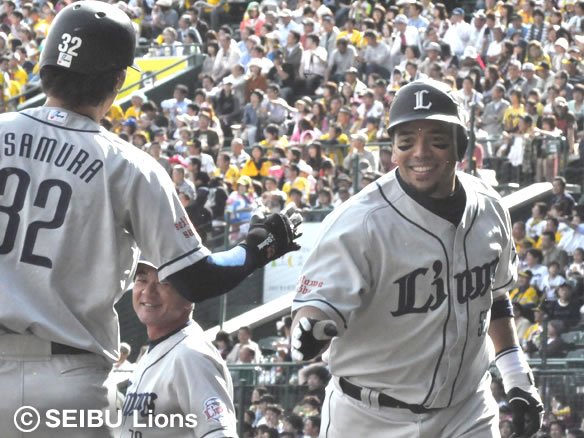 投手 帆足 7番 ブラゼル 左中二 初球の外角低めのストレートを振り抜かれると、打球はそのまま伸び左中間を破られてしまった。センターがフェンスに到達した打球を処理する間に、打ったブラゼルに2塁に進塁された。 |