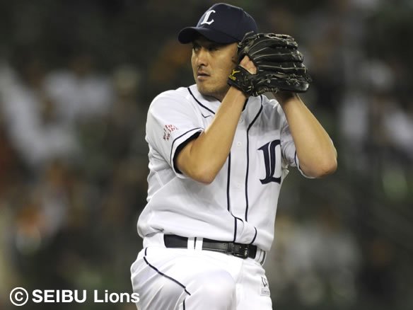投手 石井一 石井一が相手打線に的を絞らせずに凡打を誘うと、ファースト・浅村が好守備で石井一をもり立ててこの回も無失点! 最少リードながら、試合の流れはライオンズに傾いています! |