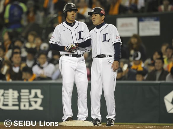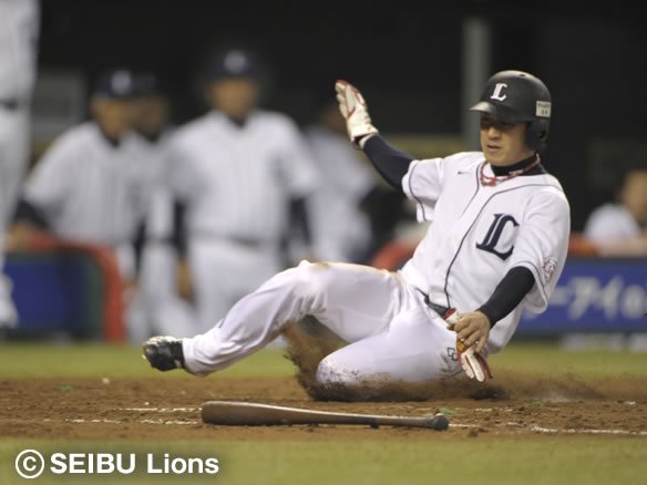 ヒットを放った片岡が俊足を生かして好機を演出すると、栗山のタイムリーで先制のホームを踏みました! 片岡と栗山のコンビネーションが生み出したリードを、しっかりと守りましょう! |