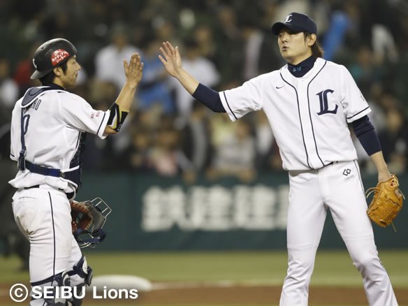 最終回のマウンドに上がった涌井は、疲労の色を見せない頼もしい投球で相手打線をこの試合6度目の3者凡退に封じ、完投勝利を飾りました! 昨日の借りを返し、今日は完勝です!! |