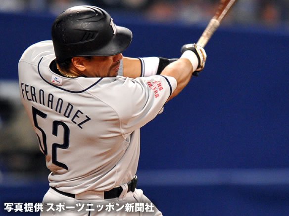 5番 フェルナンデス 二ゴ 初球、外角高めへのスライダーを打った打球は、セカンドの正面へのボテボテのゴロとなった。セカンドが打球を処理する間に、2塁ランナーは3塁へ! |
