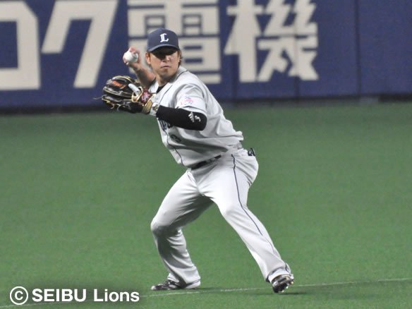 投手 中田賢 初回に好守備を連発した秋山がチーム初安打を放ち攻守に渡る活躍を見せますが、後続が相手先発・中田賢の剛球を捉えることができませんでした。打たせて取る投球を取り戻した帆足にここもしっかり抑えてほしいところです! |