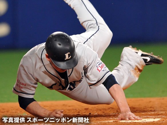 チーム初安打を放った秋山の送りバントで作ったチャンス。ここで粘投を続けている帆足がタイムリーを放ち待望の先制点を挙げました! 気を良くした帆足にさらなる好投を期待したいところです! |