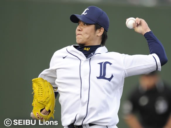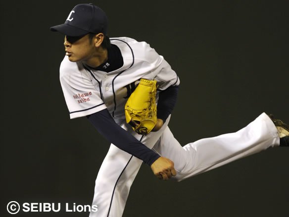 投手 帆足 4番 ルイーズ 空三振 0-2からの3球目、外角低めに沈むパームで空振りを奪った! |