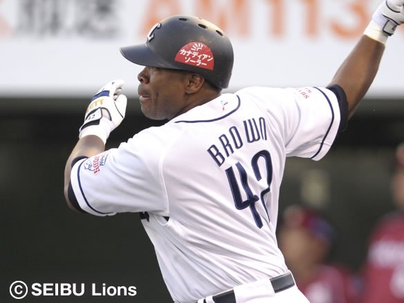 帆足は得点圏に走者を置くと制球を乱し、先制点を献上してしまいました。帆足と同じく今日1軍に上がってきたばかりのブラウンから始まる打順で、追撃の口火を切りたい! |