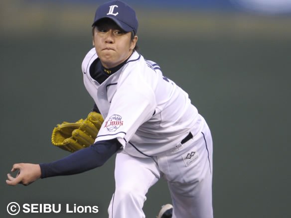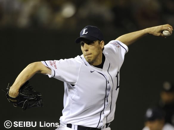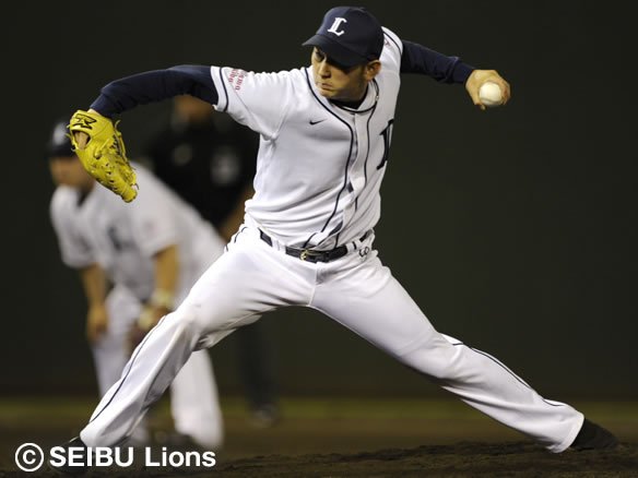投手 帆足 4番 ルイーズ 空三振 フルカウントからファウルで粘られた後の9球目、内角低めに鋭く変化するパームでタイミングを外した! |