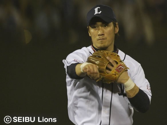投手 帆足 1番 鉄平 二ゴ 1-2からの4球目、外角低めへ逃げるパームを打たせ、一二塁間へ転がった力の無い打球をセカンドが回り込んで処理。 |