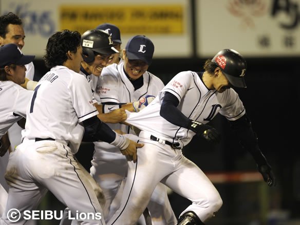 1番 浅村 左本 1-1から甘く入ってきたスライダーを見逃さずにフルスイングすると、大宮の夜空に舞い上がった打球は、大歓声のレフトスタンドに劇的な逆転勝利を知らせる4号3ラン! 浅村の初サヨナラホームランで7対4! ![]() 6