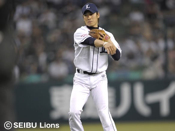 投手 涌井 2番 聖澤 三ゴ失 0-2からの真ん中高めのストレートをたたかれると、打球はサードの正面へ。サードが難しいバウンドに対し、うまくグラブを差し出しこれを逆シングルキャッチするも、送球がハーフバウンドになってしまい、ファーストがこれをキャッチできず。記録はサードのエラー。 |