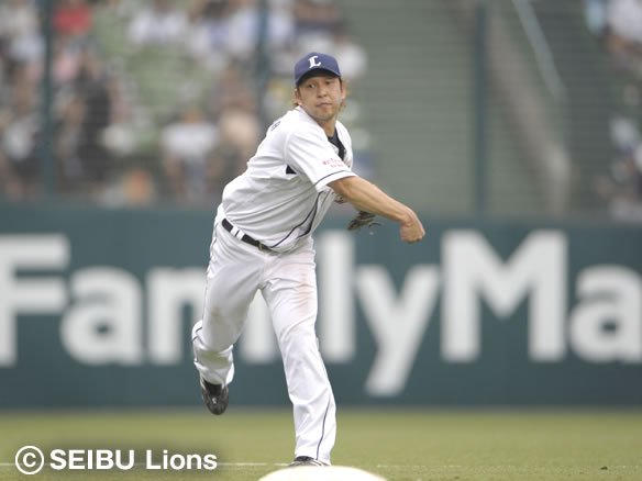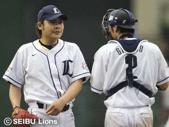 自分のピッチングを取り戻しつつある涌井は、上位打線との対戦となったこの回も落ち着いた投球を見せ、3人で切ってみせました!! |