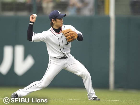 8番 金子誠 遊ゴ 0-2から外角低めの変化球で引っ掛けさせると、ボテボテのゴロをショートが二遊間真ん中寄りに回り込み落ち着いて処理した。 |