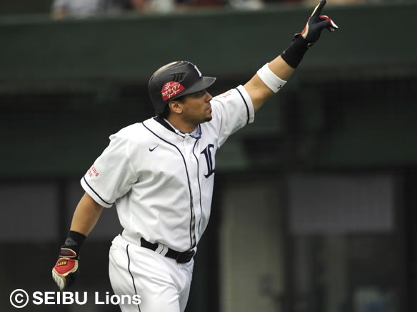 7番 フェルナンデス 左本 1-2からの内角低めのスライダーを鋭く振り抜くと、高々と上がった打球は落ちることなく、ライオンズファンの待つレフトスタンドに飛び込んでいった!! フェルナンデスの9号2ランで2対3と1点差に詰め寄る! ![]() 2