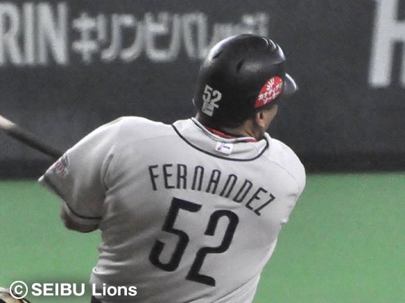 5番 フェルナンデス 左越安 2-1から内角へのストレートを打った打球は、レフトフェンスを直撃。当たりの良さが災いし、長打にはならなかった。 |