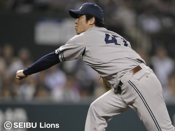 3回と同じく2死から岡田に内野安打を放たれた帆足でしたが、動じることなく後続を断って無失点。安定した投球を続けています!! |