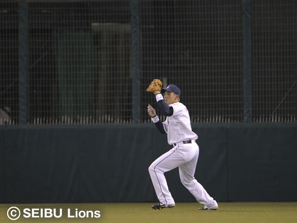 寺原からヒット性の当たりを続けて飛ばすも、相手のセカンド・後藤に続けて好捕されました。ライオンズも負けじと堅い守りを見せ、岸を助けていきましょう! |