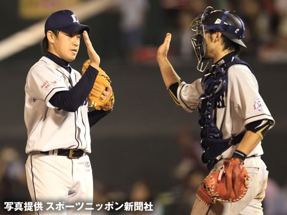 5回に立ち直りを見せた帆足。6回も持ち前の緩急をつけた投球を披露し、3人で料理しました! 勢いに乗って主導権を完全に握ったライオンズ。さらに追加点を挙げて勝利を引き寄せましょう! |