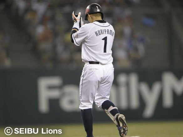 1番 栗山 左中二 0-1から低めのストレートを振り抜いた打球は、鋭い当たりとなって左中間に飛んでいった。2塁ランナーがかえり1対0と先制に成功! 打った栗山は2塁へ! 栗山はこれで6試合連続安打! ![]() 1