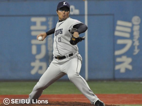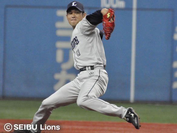 投手 岡本篤 【埼玉西武選手交代】 ピッチャー・星野→岡本篤 |